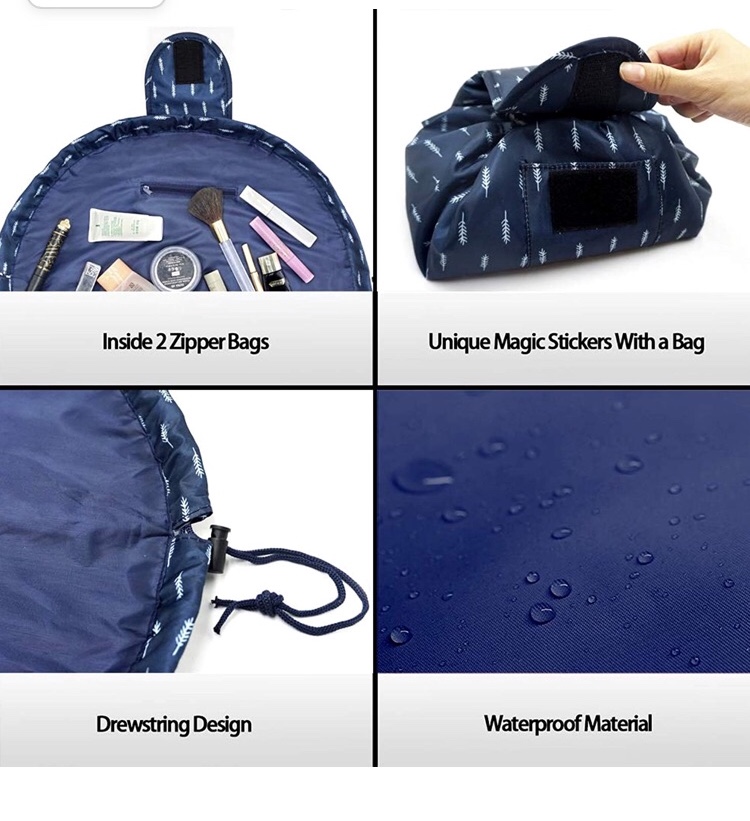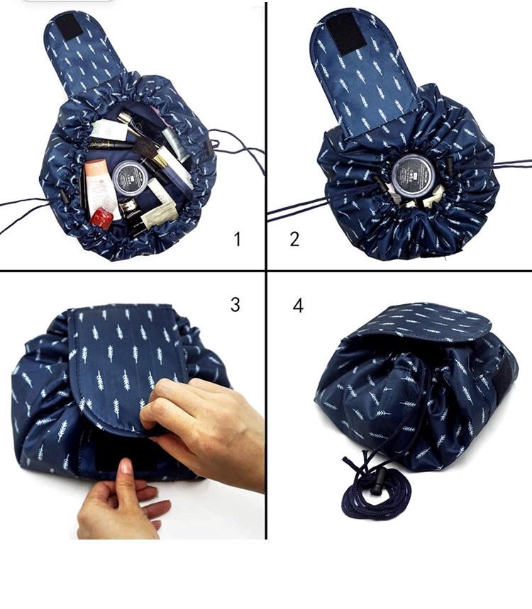 Vavabox Lazy Drawstring Make up Bag Portable Large Travel Cosmetic Bag Pouch (Feather)