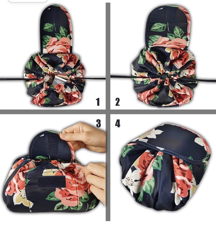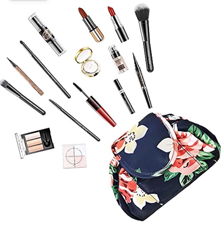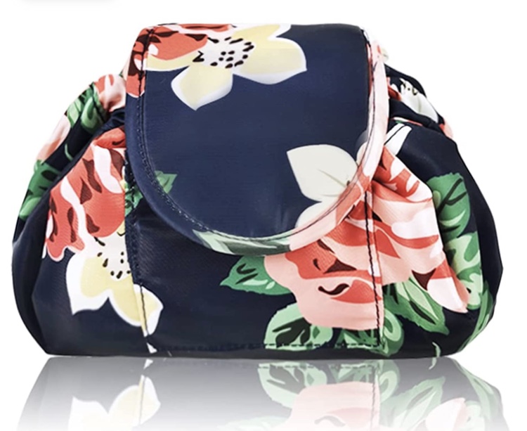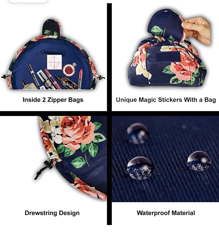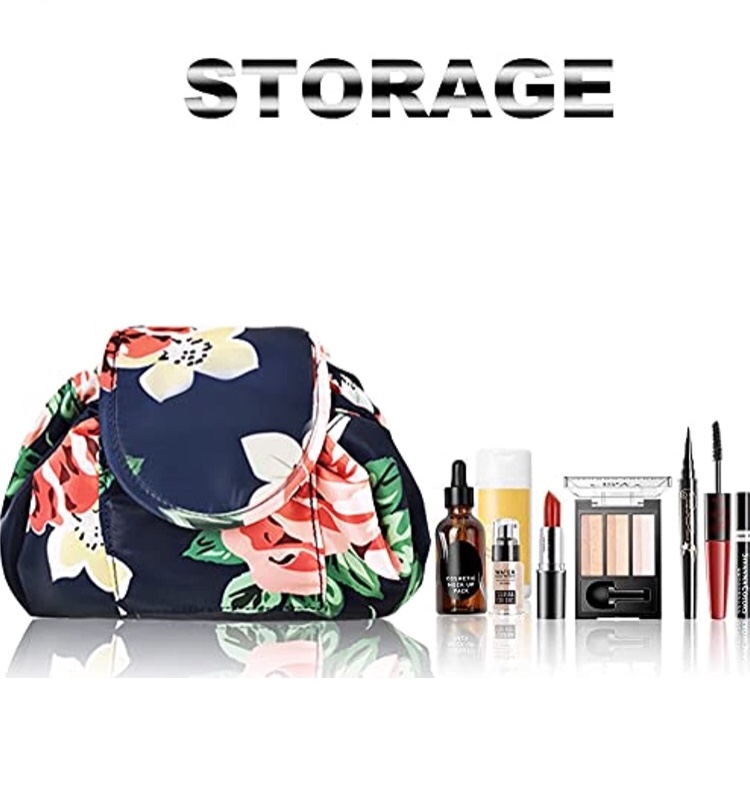 Vavabox Lazy Drawstring Make up Bag Portable Large Travel Cosmetic Bag Pouch (Floral)